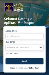 Setelah berhasil melakukan registrasi, anda sudah dapat masuk ke M-Paspor dengan cara sebagai berikut: